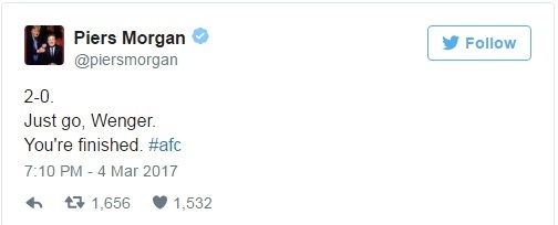 Arsenal fan Piers Morgan calls for Wenger’s exit again