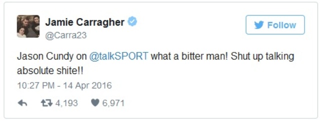 “Listen, you don’t like Liverpool, Jason. Let’s be honest. You were quite wound up that Liverpool fans were coming on, ringing up and enjoying it. And instead of just taking it, taking the medicine for tonight, you just couldn’t help yourself!