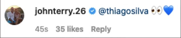 And former Chelsea captain Terry appeared to react to the post with jubilation as he replied with two emojis of a pair of eyes and a blue heart.