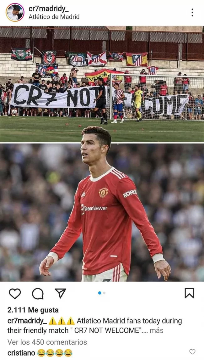 Atletico Madrid fans expressed their dissatisfaction with their club’s rumoured intention of signing Cristiano Ronaldo, and the Portuguese star responded with a message on social media.