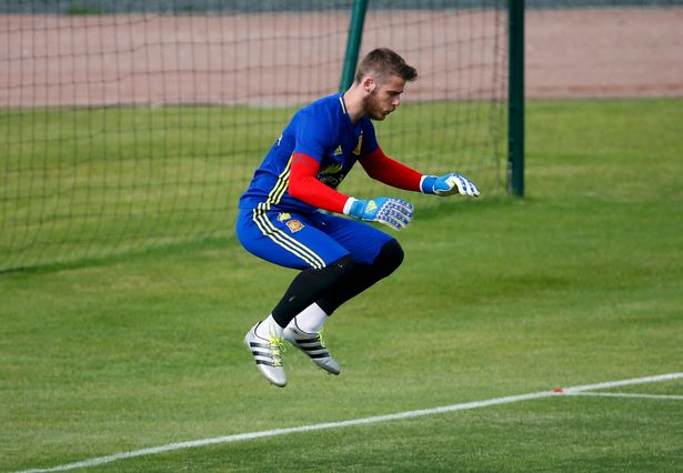 De Gea was all smiles as he was put through his paces ahead of Spain’s opening match of Euro 2016 against the Czech Republic on Monday.