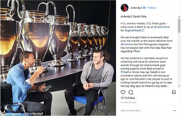 Ferdinand wrote on Instagram: ‘Gareth was brought there to eventually take over the mantle as the teams talisman from Cristiano, but the Portuguese megastar has not played ball with that idea Real had regarding Bale.