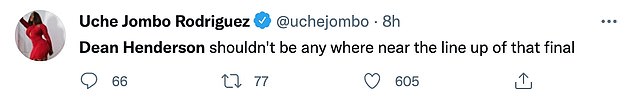 @BenTheMan tweeted: ‘And people really think Dean Henderson should start ahead of Pope in the Euros for England? Give your head a wobble’.