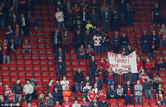 Some fans brought banners to Tuesday night’s game calling for Van Gaal to leave the club. But the Dutchman who has previously admitted finishing in the top four was the minimum expectation for the club, said in a post-match interview that supporters’ targets are too optimistic.