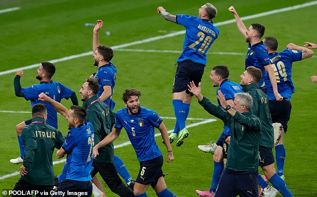 He said: ‘Seeing the Italians going to the final after what they went through, we feel for this country, they were struggling so big with Covid, it’s just amazing the story of Roberto Mancini and this team and every individual player of that team.