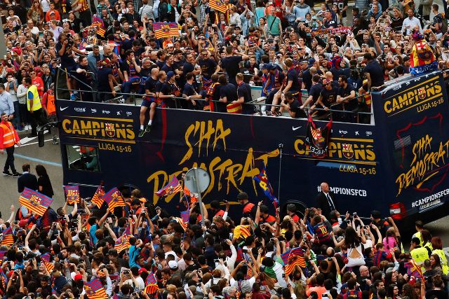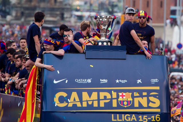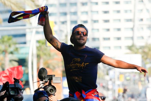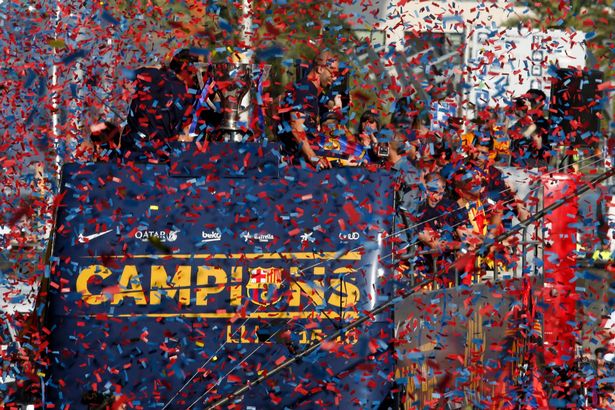 Javier Mascherano and Jordi Alba, however, were still feeling the joy of winning the title and danced atop Barcelona’s open-top bus.