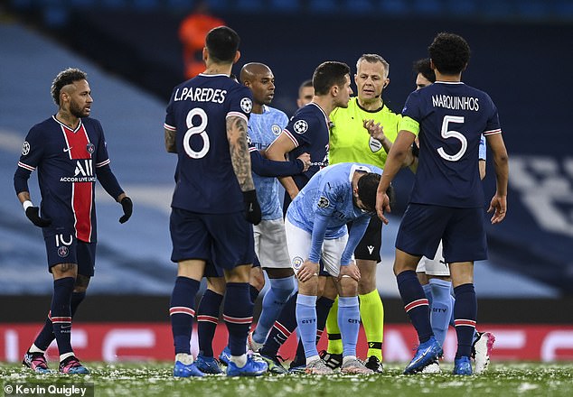 Herrera and Ilkay Gundogan battled for the ball at the Etihad Stadium but referee Kuipers gave the decision the City midfielder’s way, just moments after the PSG man rolled to the floor as if he had been fouled.