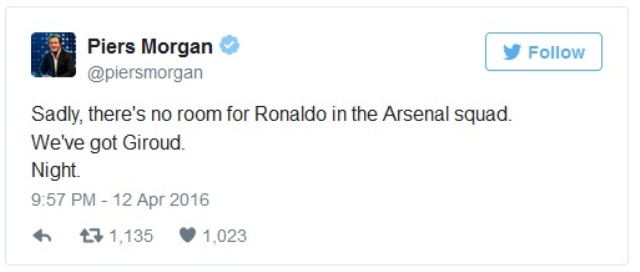 The form of Cristiano Ronaldo was a particular pain point for perpetually peeved Gunner, Piers Morgan.