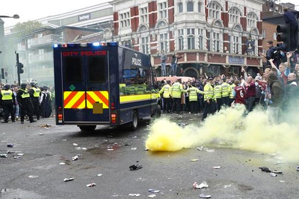 West Ham fans terrorised the United coach outside Upton Park as it was ambushed with bottles and cans which led to kick-off being delayed after riot police were called in. The FA last night pledged a full investigation.