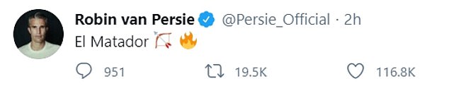 Van Persie tweeted ‘El Matador’ in relation to Cavani’s match-winning double on Sunday, which came after he set up Bruno Fernandes’ 60th-minute strike which brought Solskjaer’s squad back into the game.